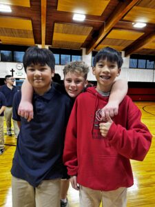 Coats must be removed while in the building, and hoodies/hats are not allowed to be worn in class. Only St. Therese uniform sweaters and sweatshirts are permitted to be worn inside the building during the school day.